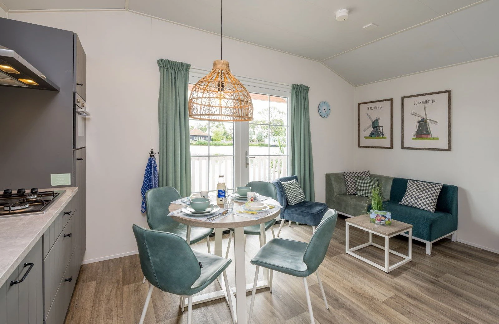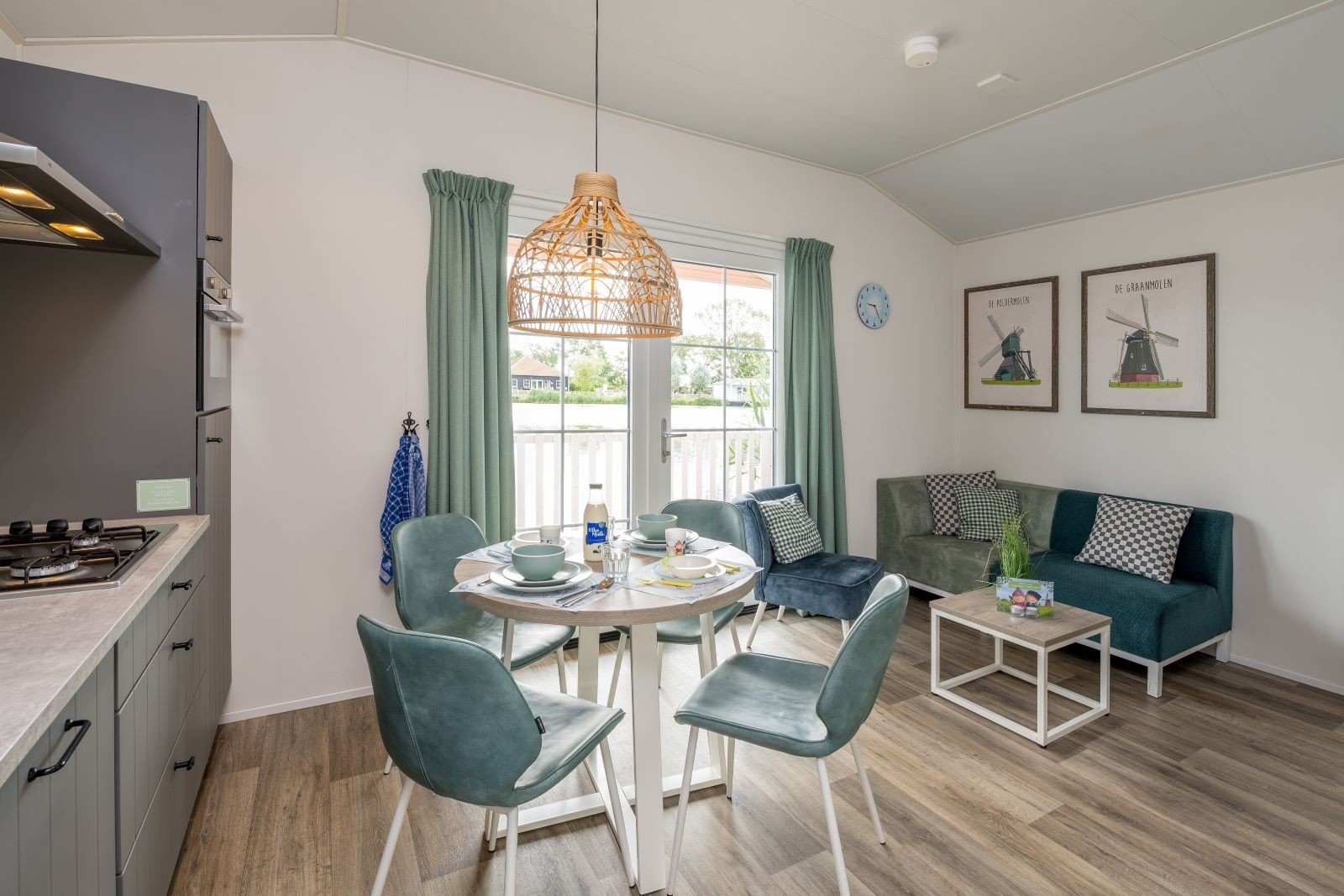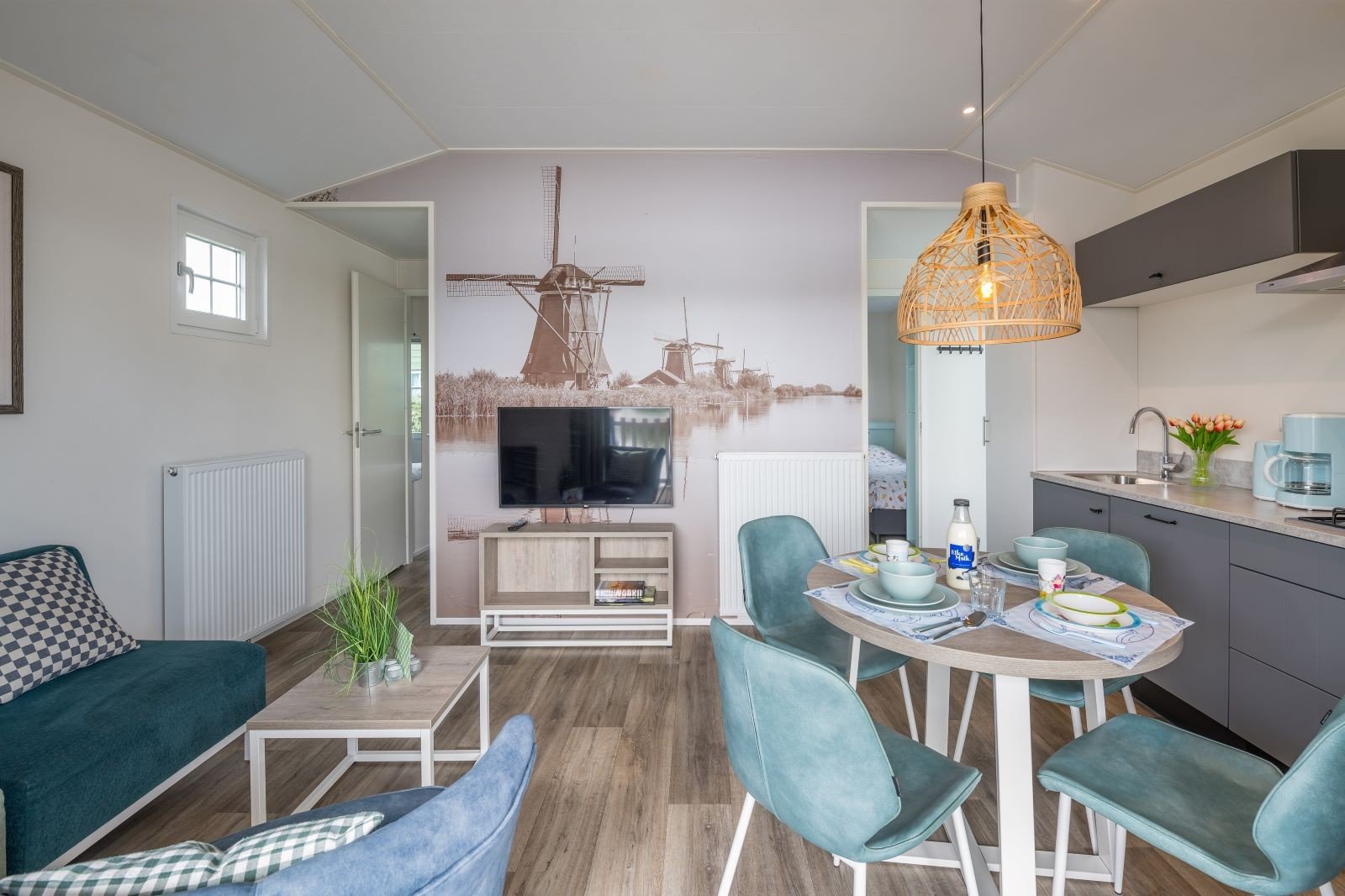 Deze pastelkleurige, vrijstaande Kinderdijk Cottage beschikt over een sfeervolle woonkamer met zit- en eethoek. De keuken is voorzien van onder andere een kookplaat, koelkast, vaatwasser en combimagnetron. Vind je weg naar dromenland in één slaapkamer met twee eenpersoons boxsprings en één slaapkamer met een tweepersoons boxspring. Ook is de Kinderdijk Cottage voorzien van een badkamer met douche en toilet.