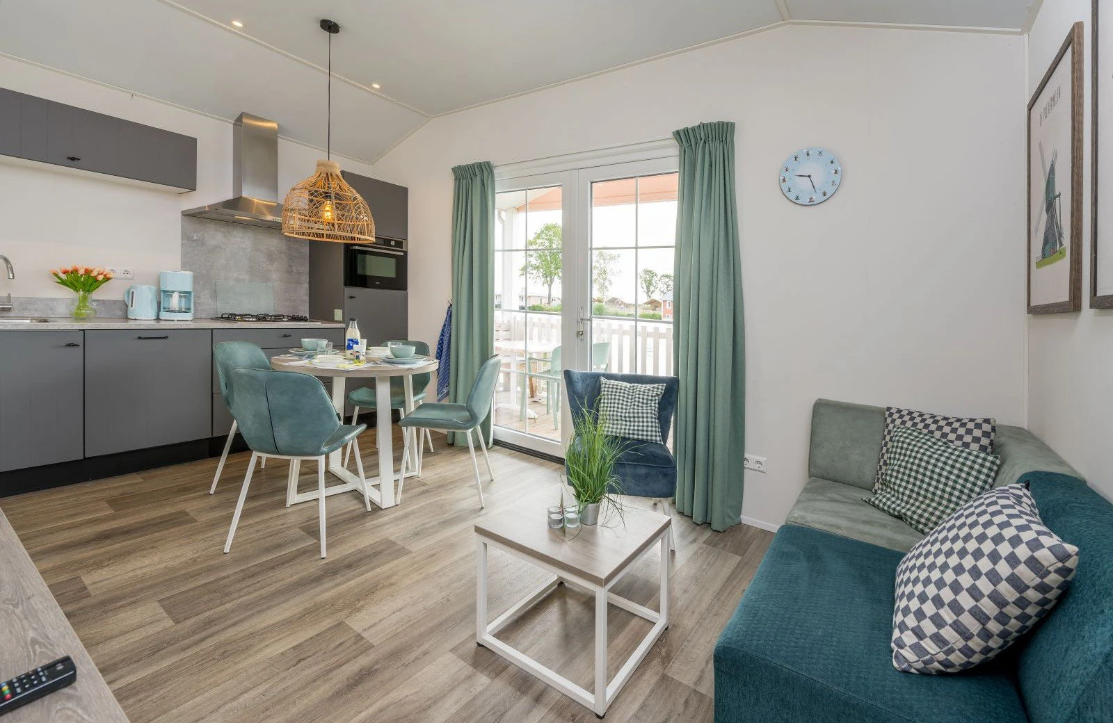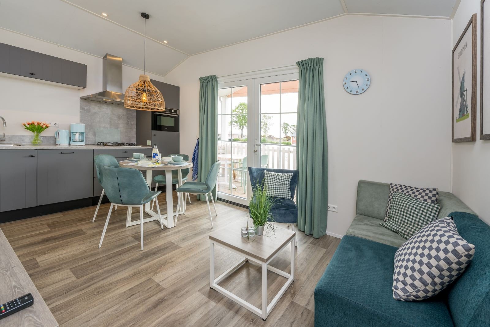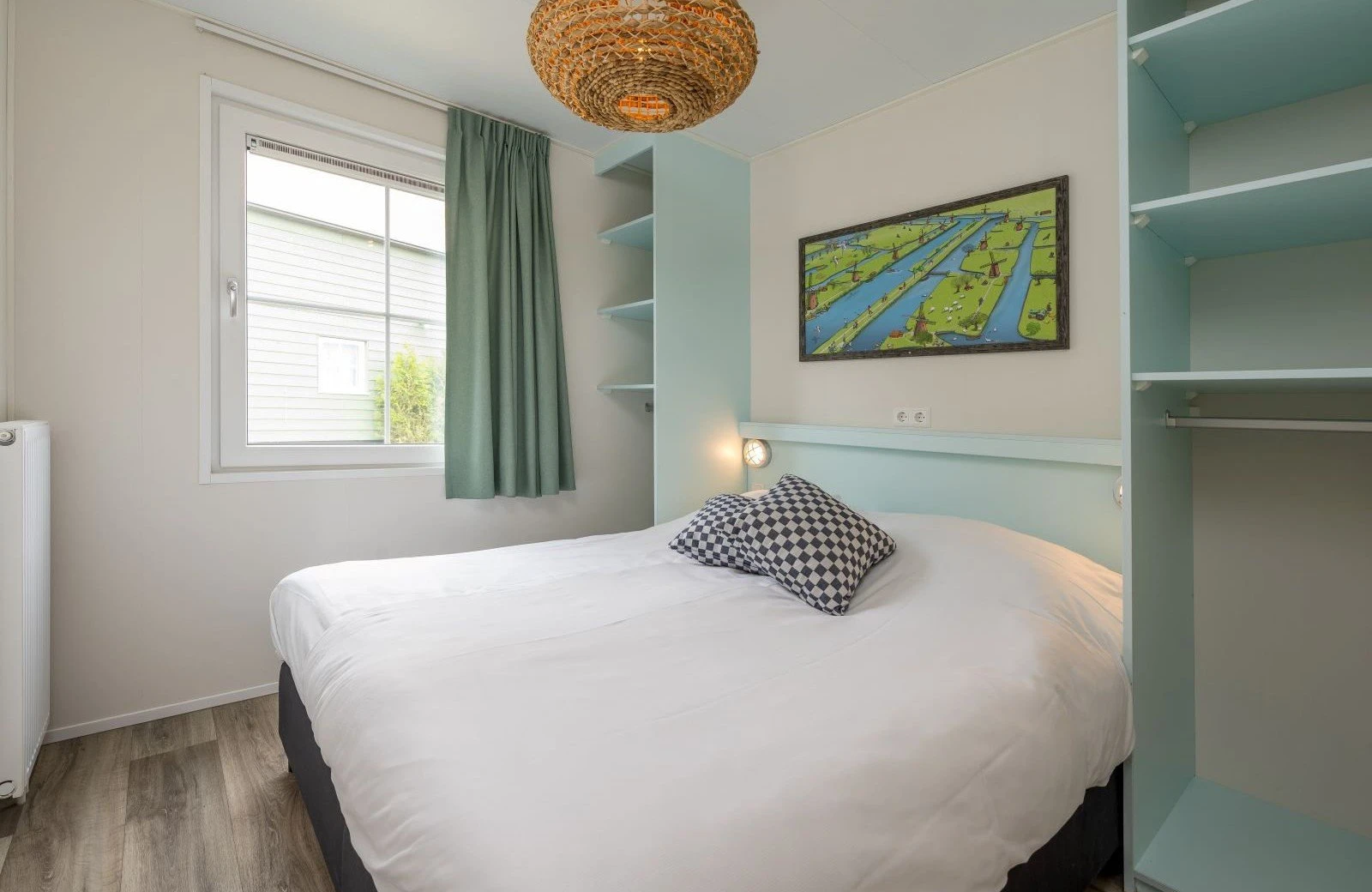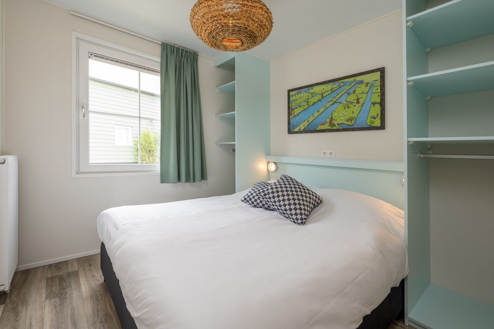 Deze pastelkleurige, vrijstaande Kinderdijk Cottage beschikt over een sfeervolle woonkamer met zit- en eethoek. De keuken is voorzien van onder andere een kookplaat, koelkast, vaatwasser en combimagnetron. Vind je weg naar dromenland in één slaapkamer met twee eenpersoons boxsprings en één slaapkamer met een tweepersoons boxspring. Ook is de Kinderdijk Cottage voorzien van een badkamer met douche en toilet.