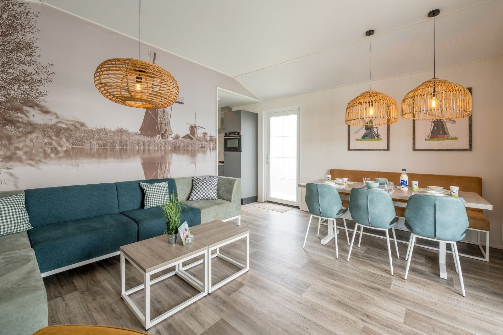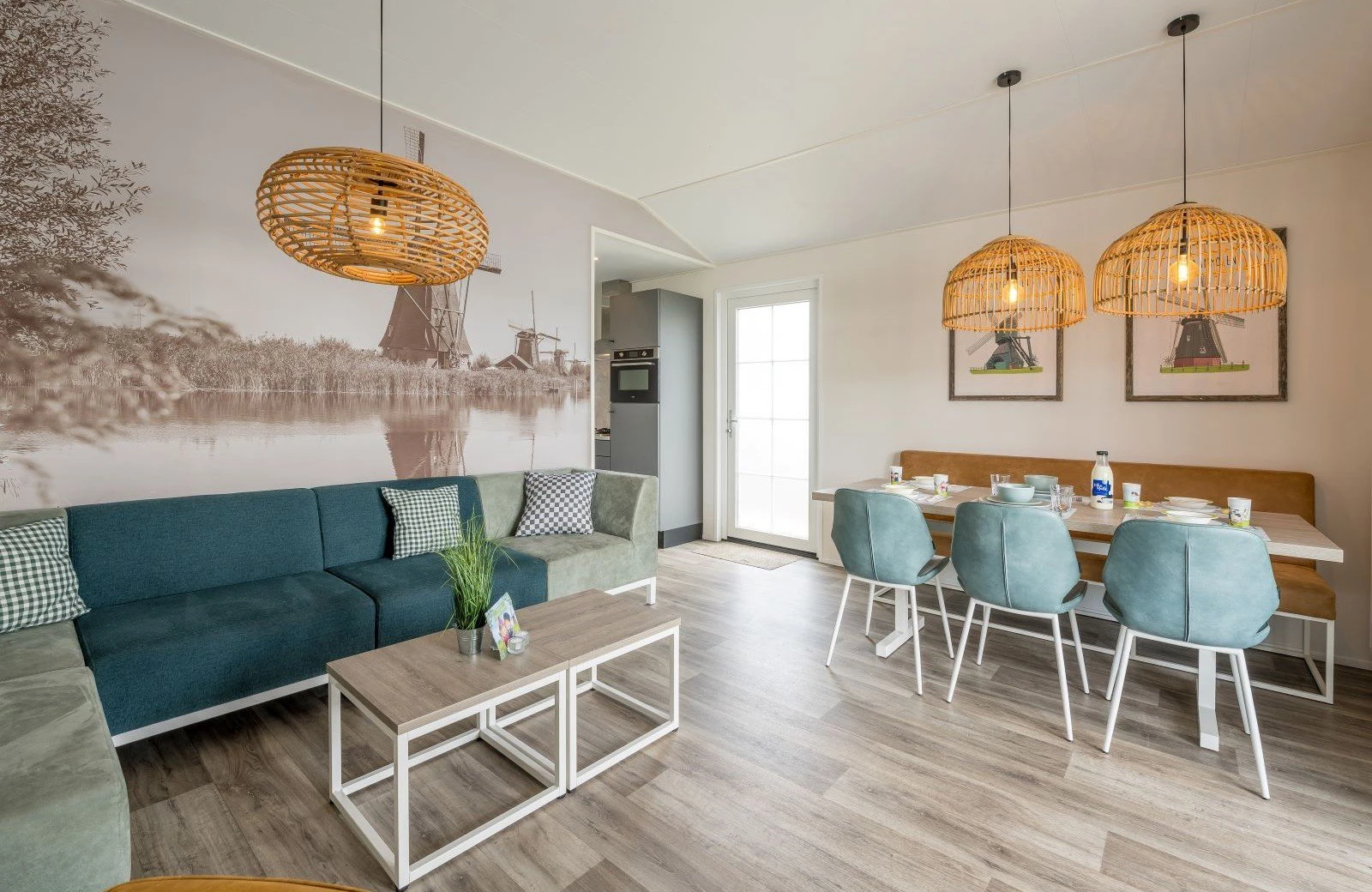 Familie Resort Molenwaard beschikt over 20 Kinderdijk Cottages met plek voor 4 of 6 personen, gesitueerd direct aan de natuurplas. De accommodaties zijn ingericht in prachtige blauwtinten en geheel in thema van Wereld Erfgoed Kinderdijk. Natuurlijk ligt bij iedere Kinderdijk Cottage ook, op loopafstand, een speelgelegenheid waar de jongste gasten zich kunnen vermaken.
