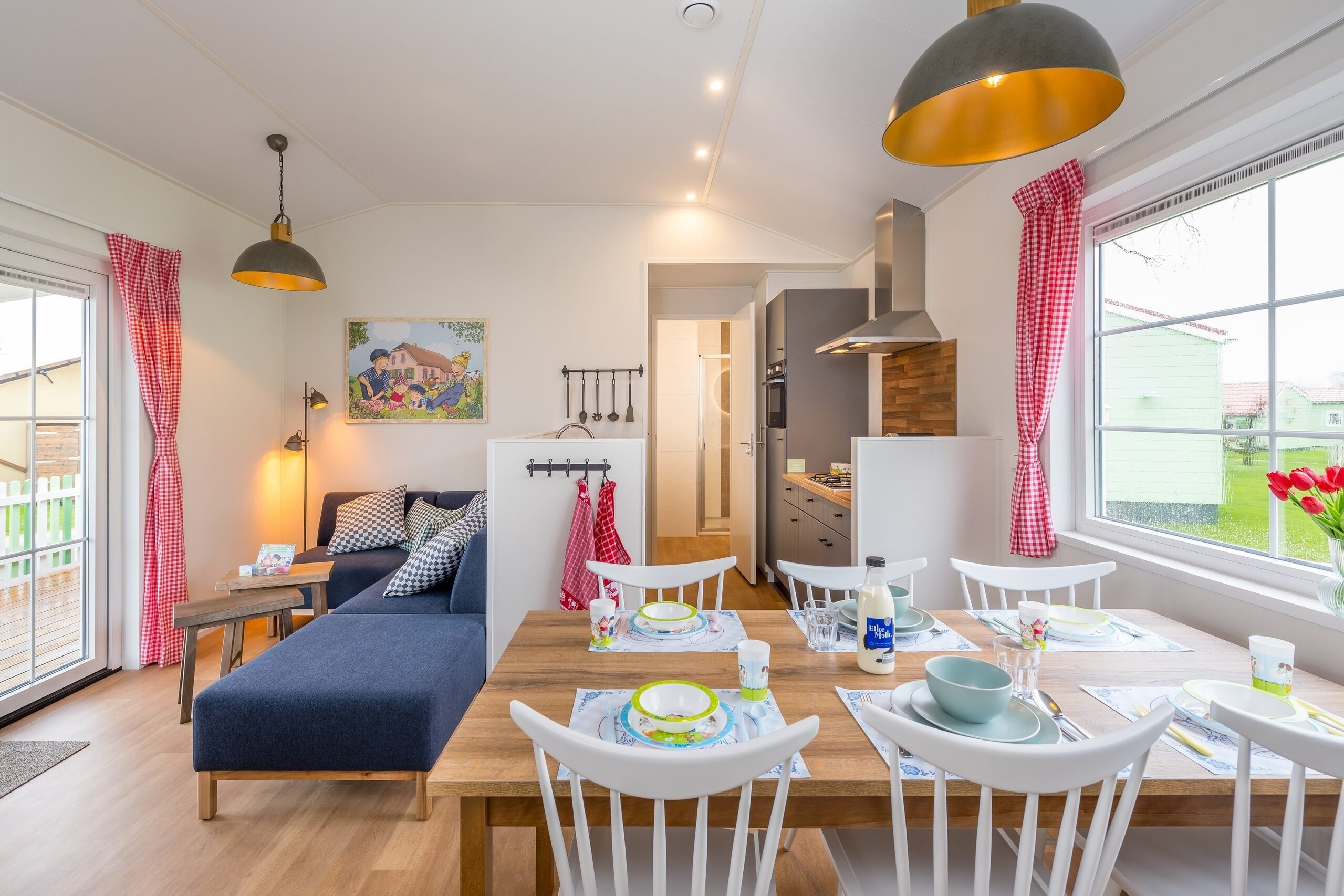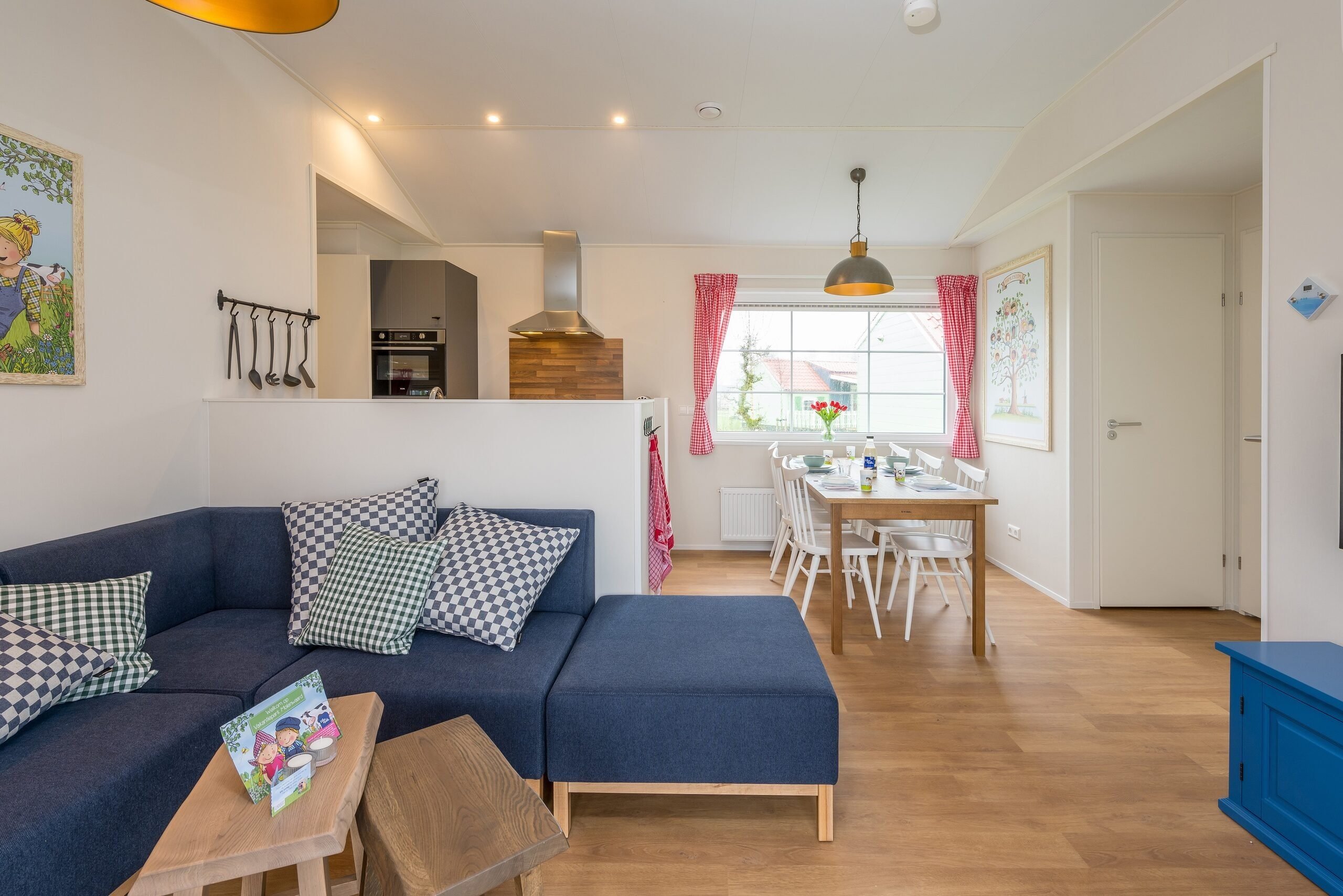 Het Luxe Fien & Teun boerderijtje beschikt over een woonkamer met een zit- en eethoek met airconditioning. De keuken is voorzien van onder andere een kookplaat, koelkast, vaatwasser en combimagnetron. Tijd om te gaan slapen? Dat kan in de drie slaapkamers, waarvan twee slaapkamers met comfortabele Swisse Sense bedden en een stapelbed. Ook is het Boerderijtje voorzien van een badkamer met douche en apart toilet.