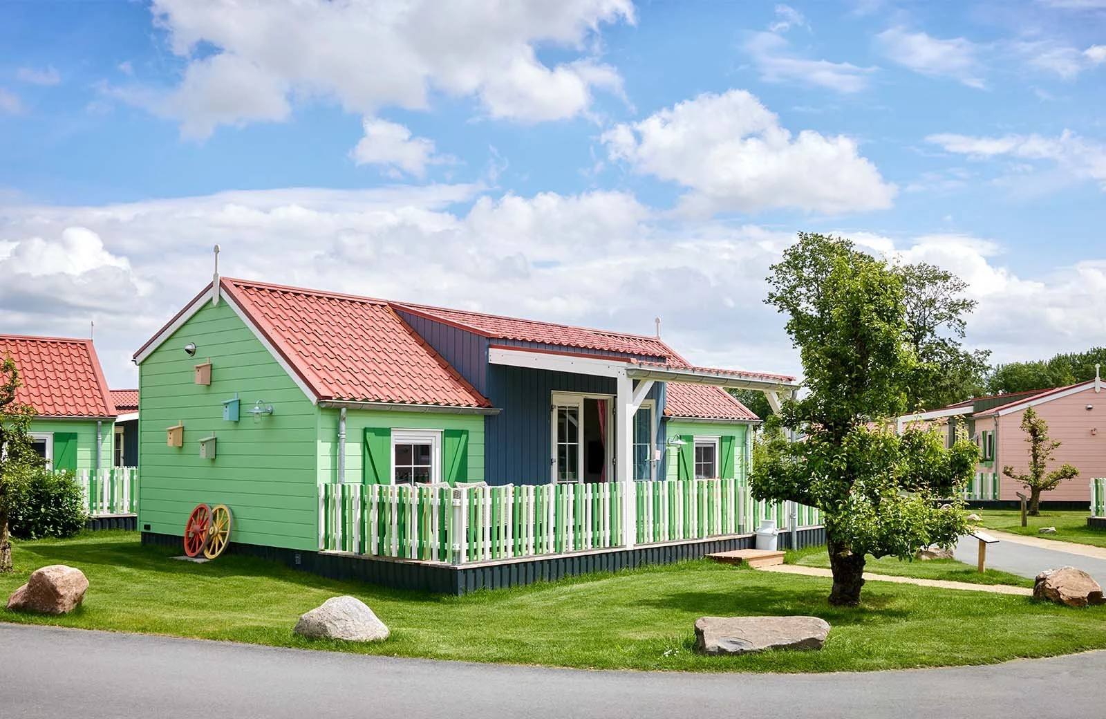 Familie Resort Molenwaard beschikt over 8 Luxe Fien & Teun Boerderijtjes, gesitueerd midden op het park. De boerderijtjes zijn ideale accommodaties voor gezinnen met (jonge) kinderen die houden van nog meer comfort. Dit vrolijke, vrijstaande Boerderijtje heeft een airco en is volledig gethematiseerd; elk detail klopt. Zo krijg jij het gevoel alsof je verblijft in een échte luxe boerderijwoning.