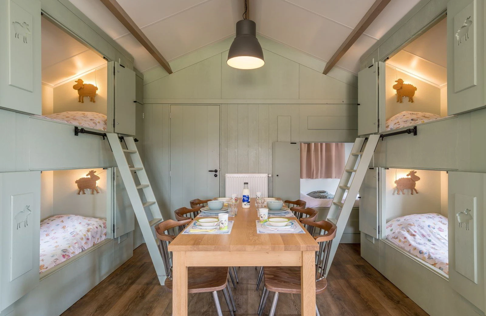 Ervaar het Hollandse landleven met uitzicht op de schapen, direct vanuit de Mike & Molly Schaapskooi accommodaties! Geniet iedere ochtend op je eigen omheinde veranda van een heerlijk ontbijt met uitzicht op de schapenweide. En aan het eind van de dag slaap je in deze gethematiseerde accommodaties in een échte Hollandse bedstee. Hoe gezellig (en uniek) is dat?