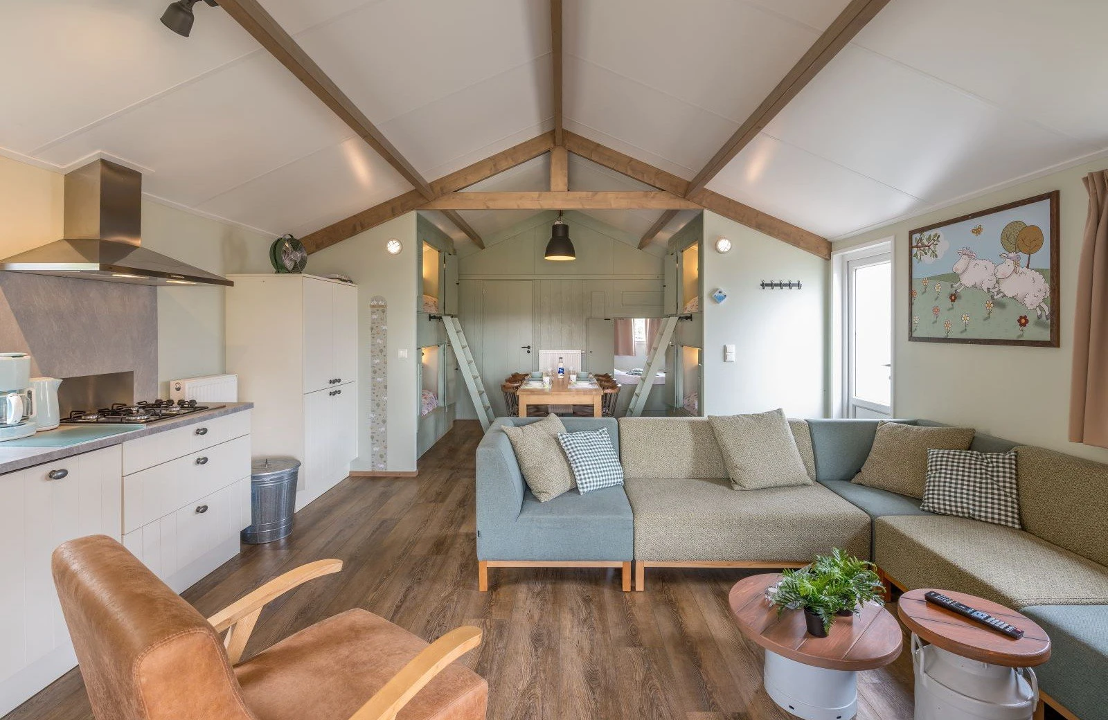 Deze unieke accommodatie is ideaal voor gezinnen met kinderen en beschikt over een woonkamer met zit- en eethoek. De keuken is voorzien van onder andere een kookplaat, koelkast, vaatwasser en combimagnetron. Ook zijn de Mike & Molly Schaapskooitjes voorzien van een badkamer met douche en toilet. In de Schaapskooitjes slaapt iedereen in een échte bedstede. Voor de kinderen zijn er twee stapelbedstedes en voor de ouders een tweepersoons bedstede.